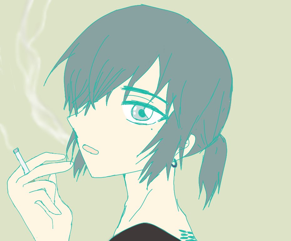 深夜のお絵描きーってやってて寝落ちした。 髪の毛結んでるこむさん。 書いててスリムタバコでも良いなぁと思いました。 #こむぎゃらりー