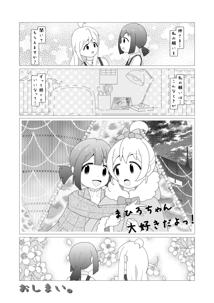 #今月描いた絵を晒そう 漫画4ページと1ページ、カラー2枚描きました 4ページのほうは全部で7ページ程度の大したものではないのだけど、初めて描いた漫画で描ききれないかと思っていたので、最後まで描けてよかったです。