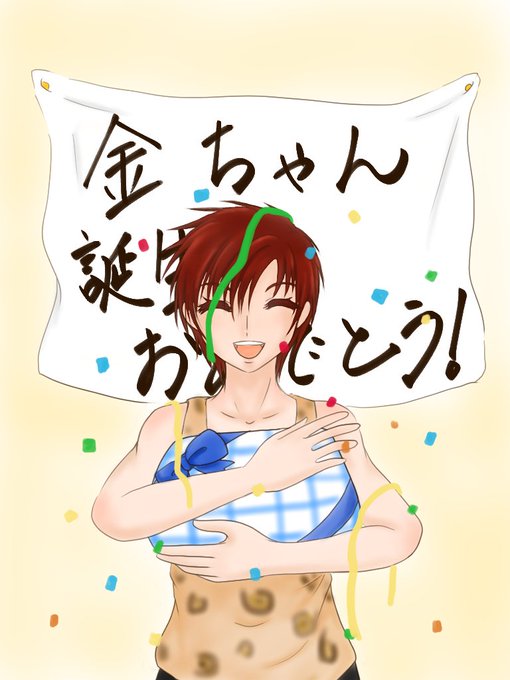 金ちゃんハッピーバースデー!のイラスト 四天はそれぞれ買うんじゃなくて、皆でまとめて1個のプレゼント渡す印象💚💛 #遠山金太郎誕生祭2023