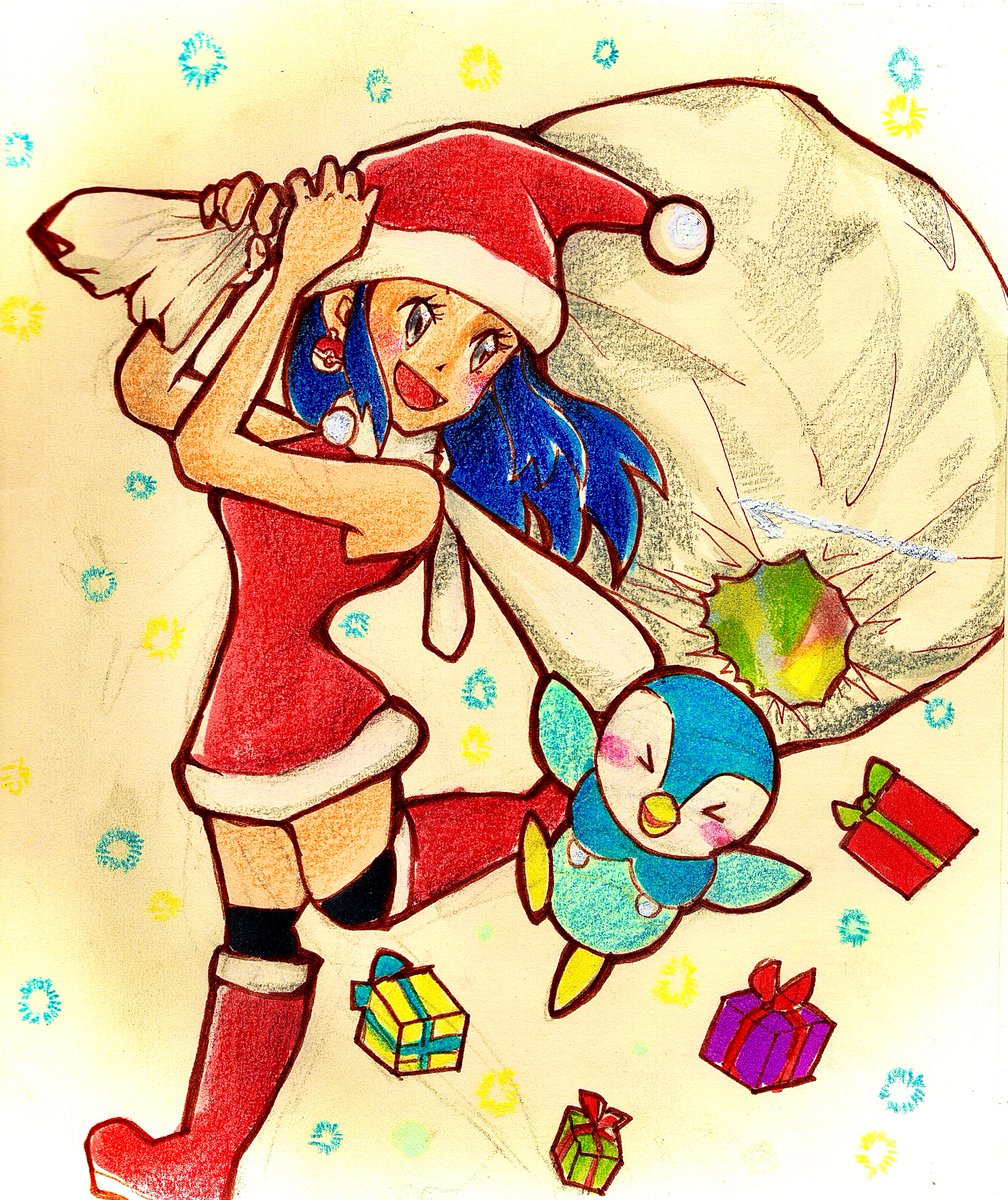 🎄メリークリスマス🎄 素敵なクリスマスになりますように🔔❣️ ヒカリサンタ描いた💕 プレゼントの中には ポッチャマも居たみたい🤣🤣🤣 #ポケモンイラスト #ポケモン絵描きさんと繋がりたい #MerryChristmas #クリスマスイラスト