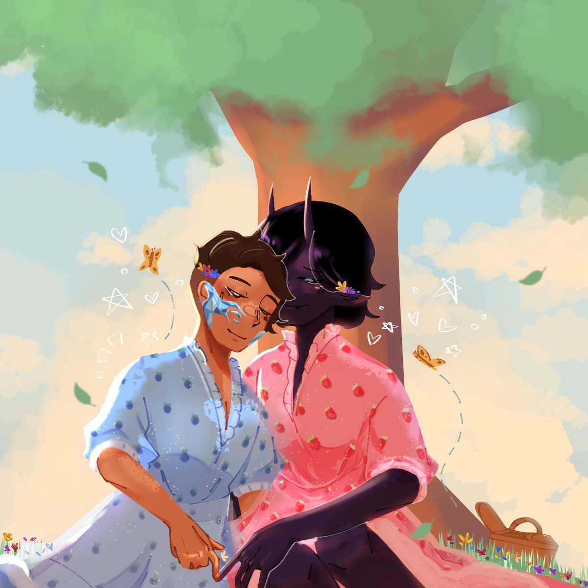 Yes I'm still drawing them in these dresses 🥰 #pastel400dtiys #skeppyfanart #badboyhalofanart #happyduo