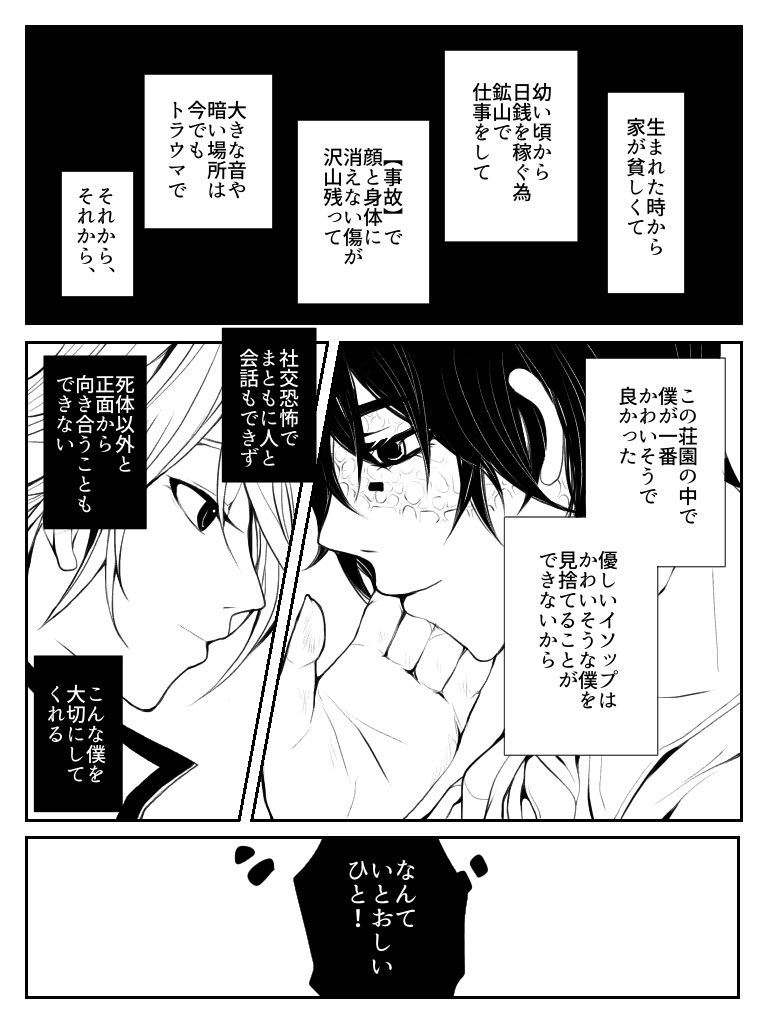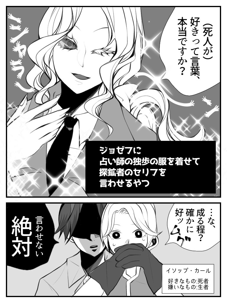 #一番目にリプきたキャラに二番目にリプきたキャラの服を着せて三番目にリプきたキャラの台詞を言ってもらう 第4回は「おジョゼに独歩の衣装着せて探鉱者のセリフを言ってもらう」探納です。やや写納表現。おジョゼ初描き〜♡