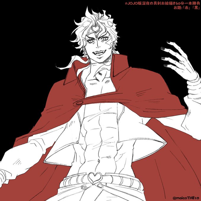 #JOJO版深夜の真剣お絵描き60分一本勝負 お題:「赤」「黒」 (10分遅刻開始20分遅刻投稿失礼します) 原作の赤DIO様のイラストがとても好きです🥰 アニメDIO様の夜空に舞う赤いマントかっこよかったです…何度でも見たい
