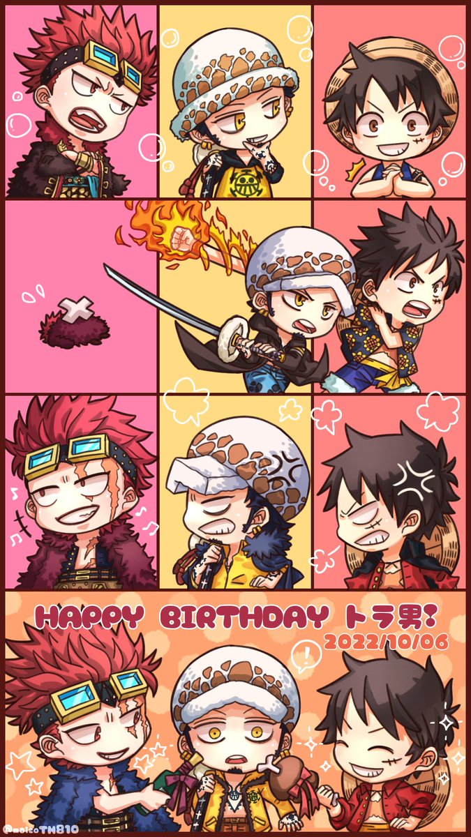 #トラファルガーロー誕生祭2022 ローさんお誕生日おめでとうございまーーーーーーーーす!!!!!!🥳🥳🥳🎉🎉🎉 今年は三船長揃っての活躍をアニメで観ることができて大変嬉しいです✨これからも元気な仲間たちとお友だちに囲まれて、自由で楽しい旅ができますように🤗🧡