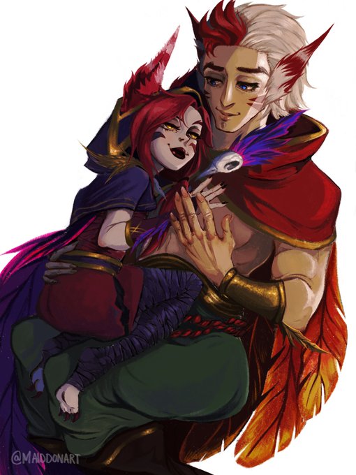 I just like to draw Xayah & Rakan holding each other 🥲 #LeagueOfLegends #LeagueOfLegendsFanArt #xayah #rakan
