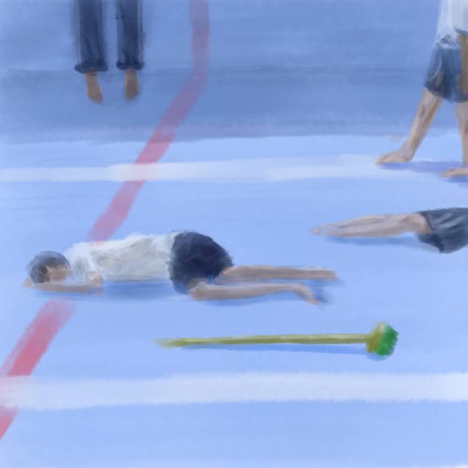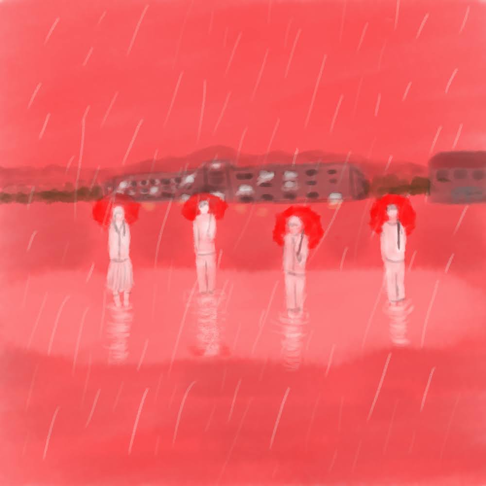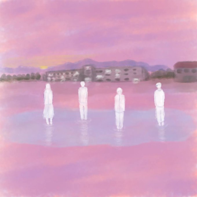 「ケンとミオとヒナとヨシ、彼らのスモールタウン、かさぶたの下の赤」というタイトルの絵です。本当です。 #イラスト #スケッチ #みんなで楽しむTwitter展覧会 #絵描きさんとつながりたい #painting