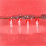 「ケンとミオとヒナとヨシ、彼らのスモールタウン、赤。」というタイトルの絵です。本当です。おはようございます。 #イラスト #スケッチ #冬の創作クラスタフォロー祭り #みんなで楽しむTwitter展覧会 #painting #挿絵