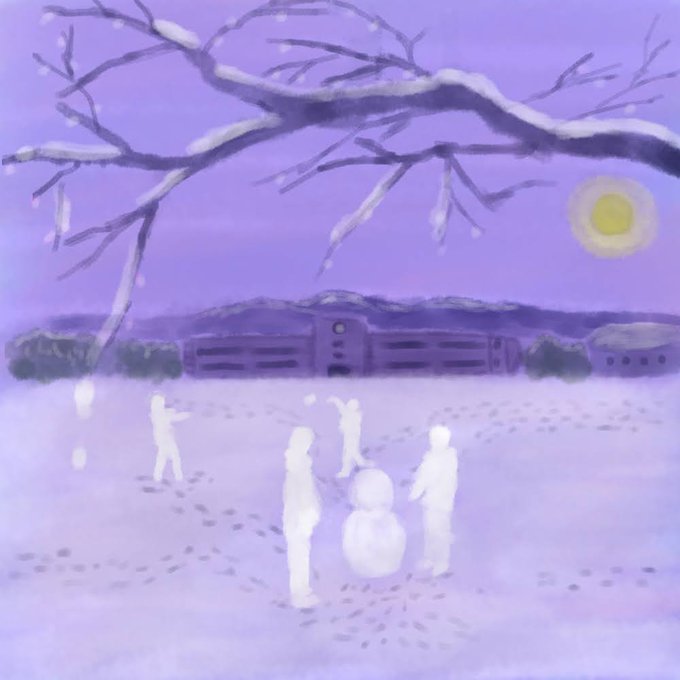 「ケンとミオとヒナとヨシ、彼らのスモールタウン、靴ずれの赤。」というタイトルの絵です。本当です。おはようございます。 #イラスト #スケッチ #冬の創作クラスタフォロー祭り #みんなで楽しむTwitter展覧会 #挿絵 #painting