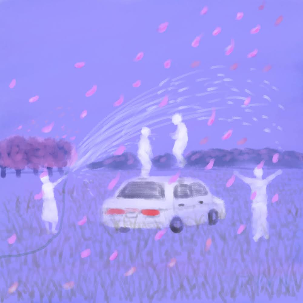 「ケンとミオとヒナとヨシ、最果ての春、弛緩、シャララ」というタイトルの絵です。本当です。おはようございます。 #イラスト #スケッチ #挿絵 #みんなで楽しむTwitter展覧会 #絵描きさんと繋がりたい