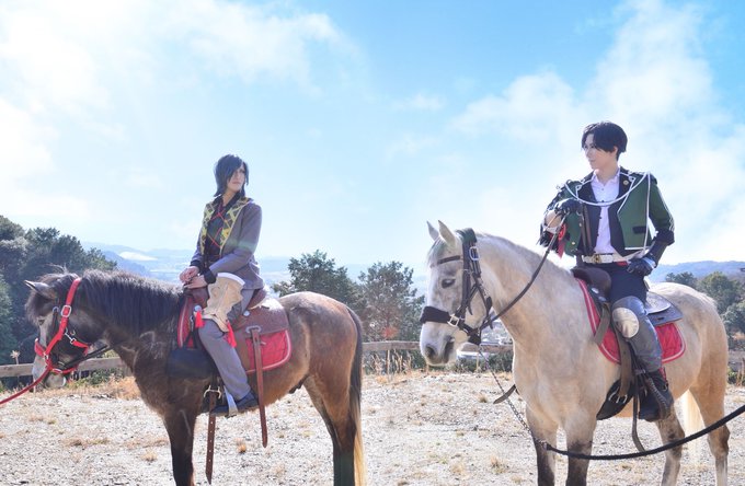 7 18 刀剣乱舞コスプレで乗馬🐎 光世=カイリうなぎ 豊前=マイケル 撮影=8100さん 撮影地=伊勢忍者キングダム 23/03/20 21:08
