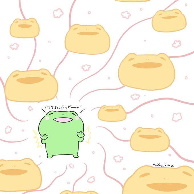 おはけろ🐸 けろまんじゅうビーーーーム🖐️🐸🖐️💫 #けろ #ゆるいイラスト #みんなで楽しむTwitter展覧会 #芸術同盟