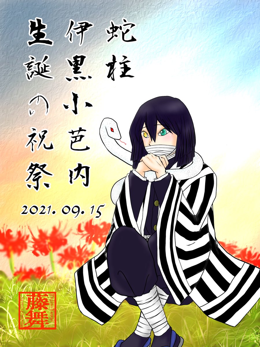 この沼に落ちて、こんなに創作するとは思わなかった! 繋がりと出会いをくれて有難う(*´▽`人)♡ 🎉🎂Happy Birthday 🎂🎉 #伊黒小芭内誕生祭2021 #伊黒小芭内生誕祭2021