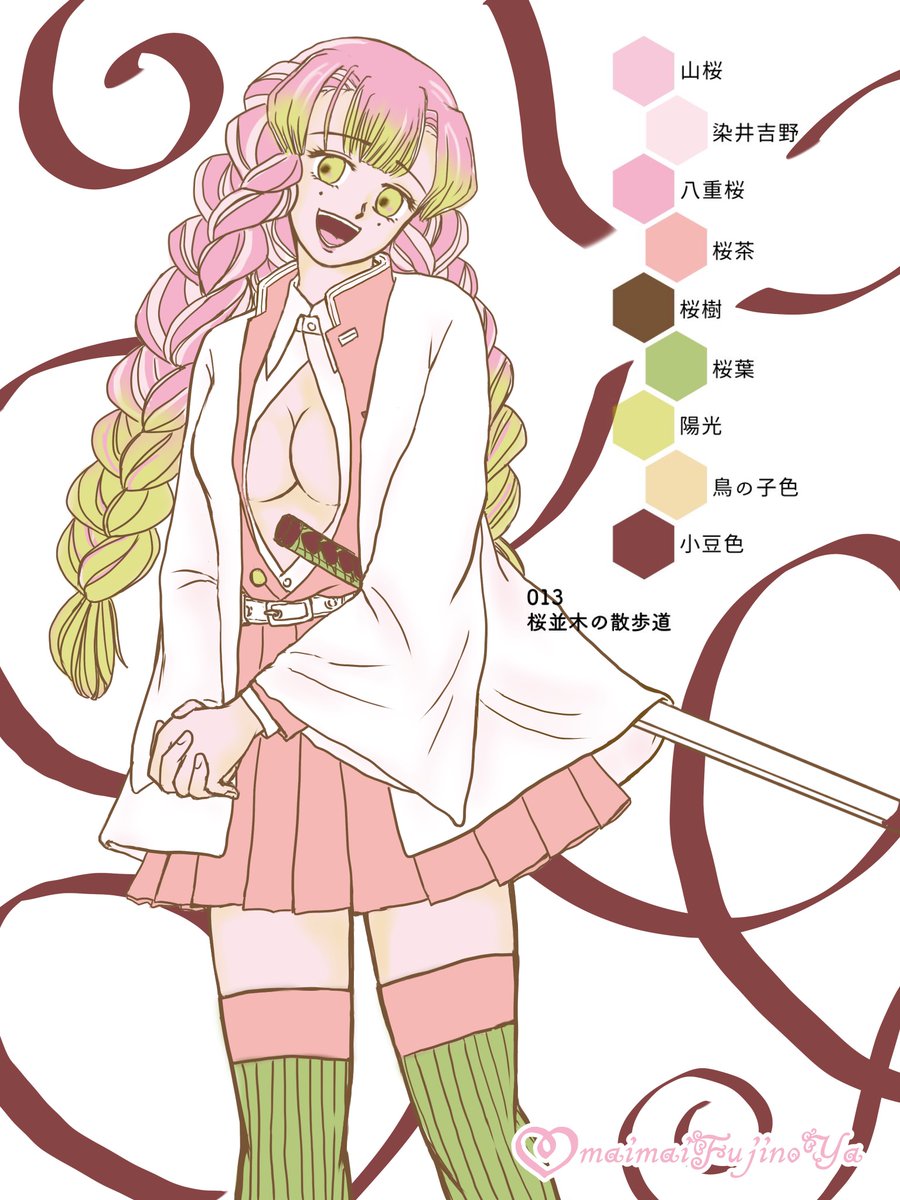 第25回 配色指定おえかき 配色レシピ「015番 桜並木の散歩道」 お題「甘I露寺蜜I璃」 #配色アイデア手帖 #配色指定おえかき