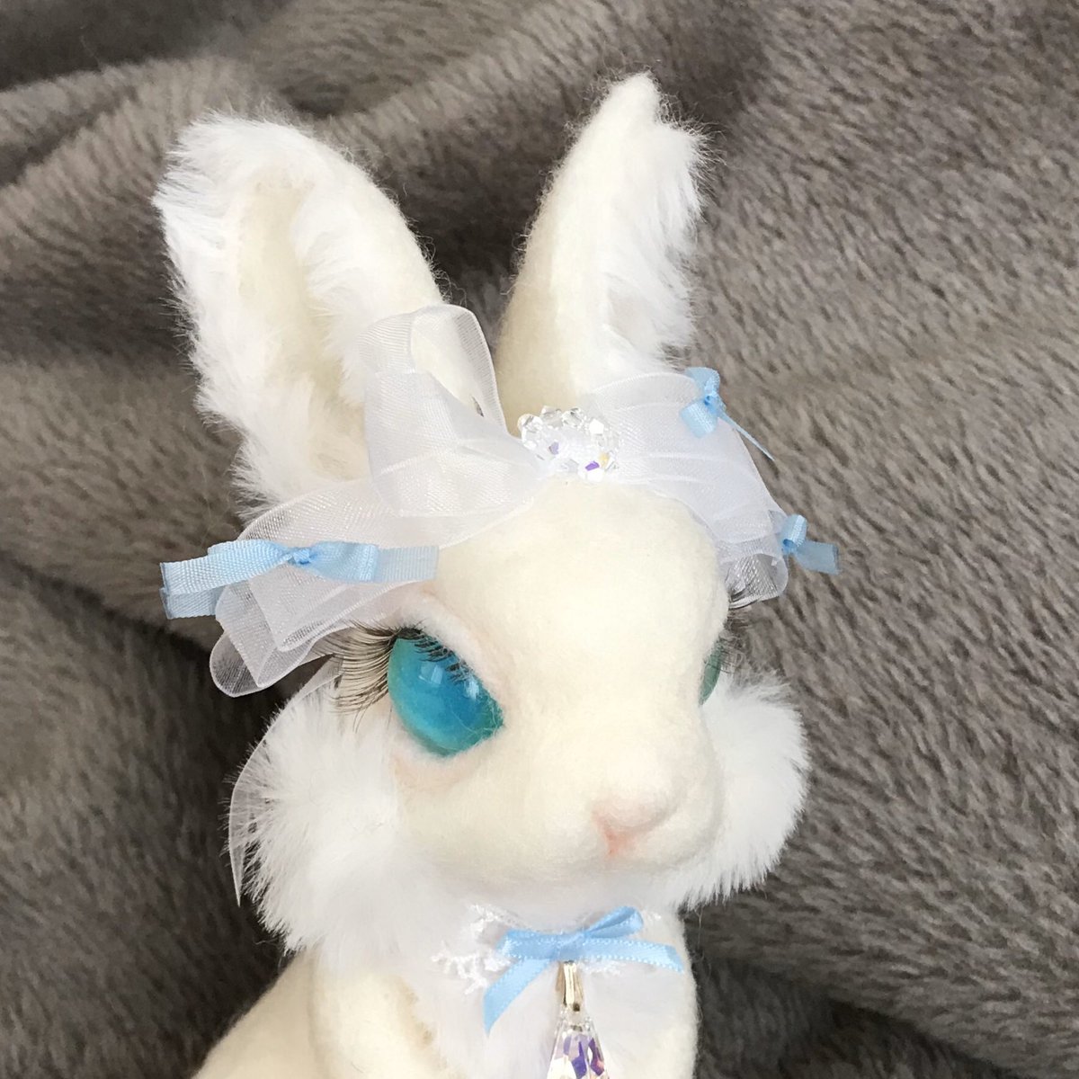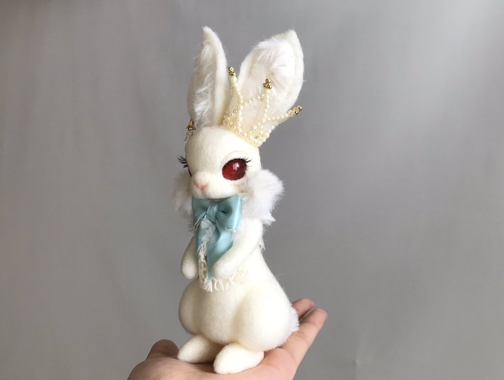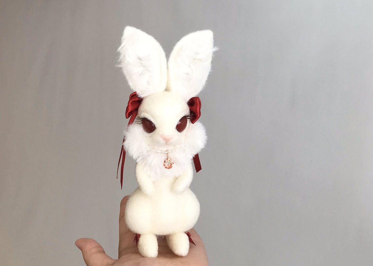白うさぎちゃん生まれました🐰💓 上品で美しいうさちゃんです♡ おめかしが好きでリボンやチョーカーが欠かせません🎀 #羊毛フェルト #ハンドメイド好きさんと繋がりたい #ドドっとRTされてドドっとフォローされないかなと期待している