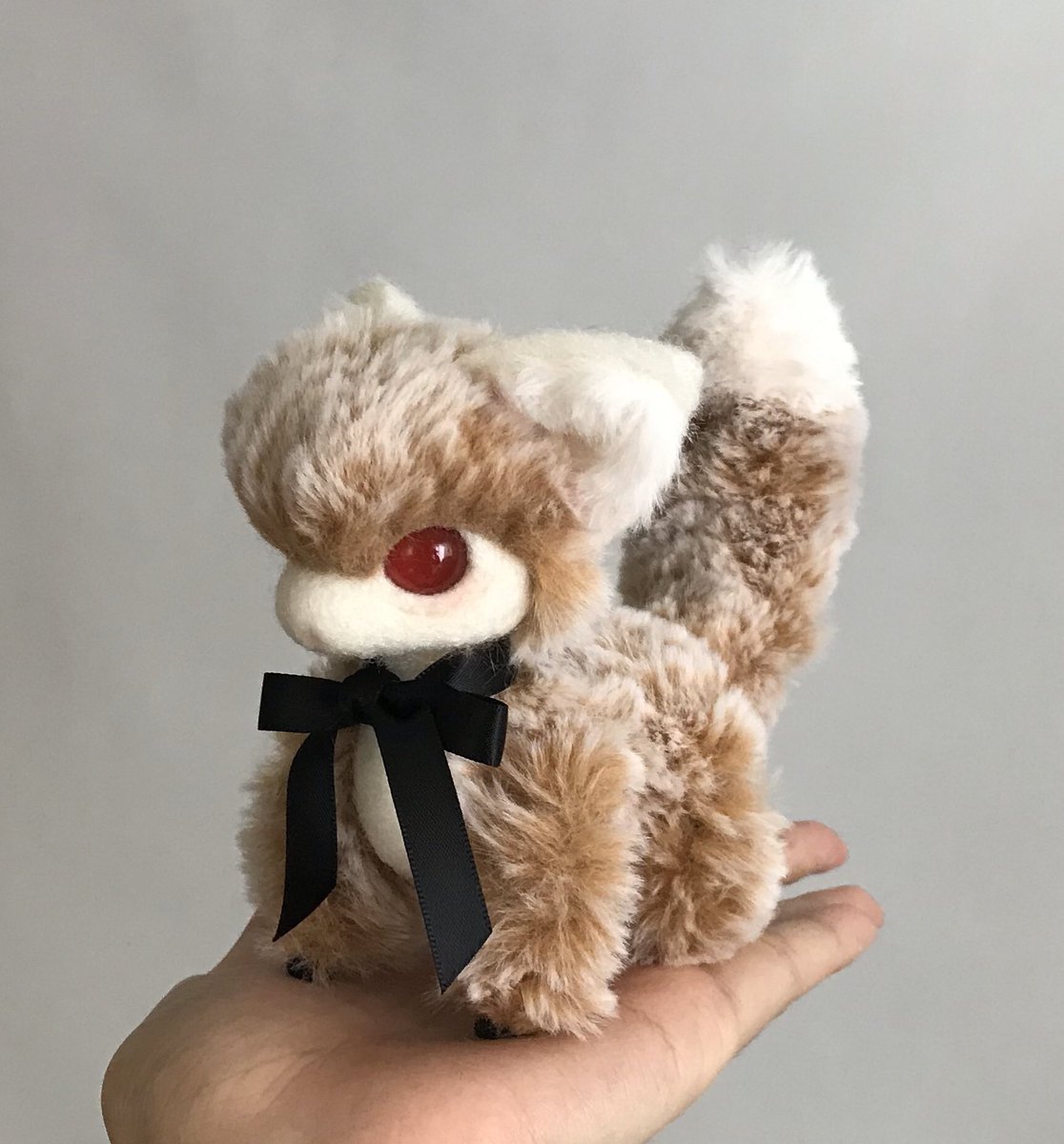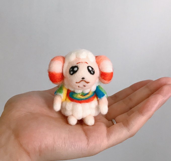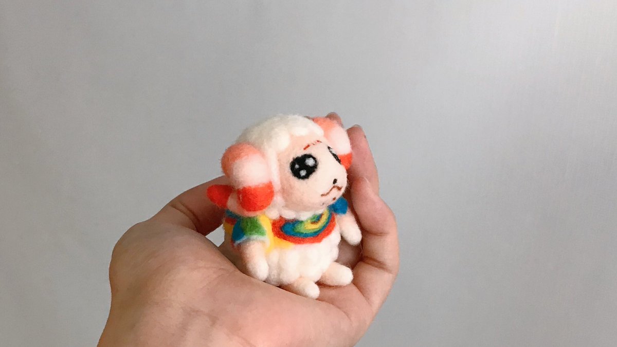 ちいさな精霊さん生まれました❤️ 赤いリボンがよく似合います꒰ °꒫°꒱ 人懐っこい子でよく周りをうろちょろしています♡ 優しく撫でてあげましょう(*˘˘*)♡ #ハンドメイド好きさんと繋がりたい #羊毛フェルト