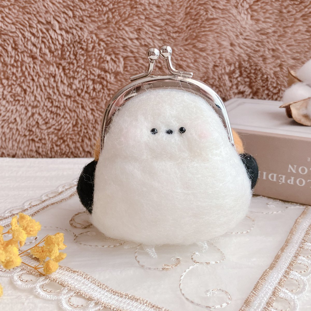 シマエナガちゃんのがま口完成〜!☺️ ふっくらまるまるした子に仕上がりました! 3月11日(土)のイベントに連れていきます🙌 お時間があれば是非来てくださいね🐾 #TOKYOハンドメイド祭 #羊毛フェルト