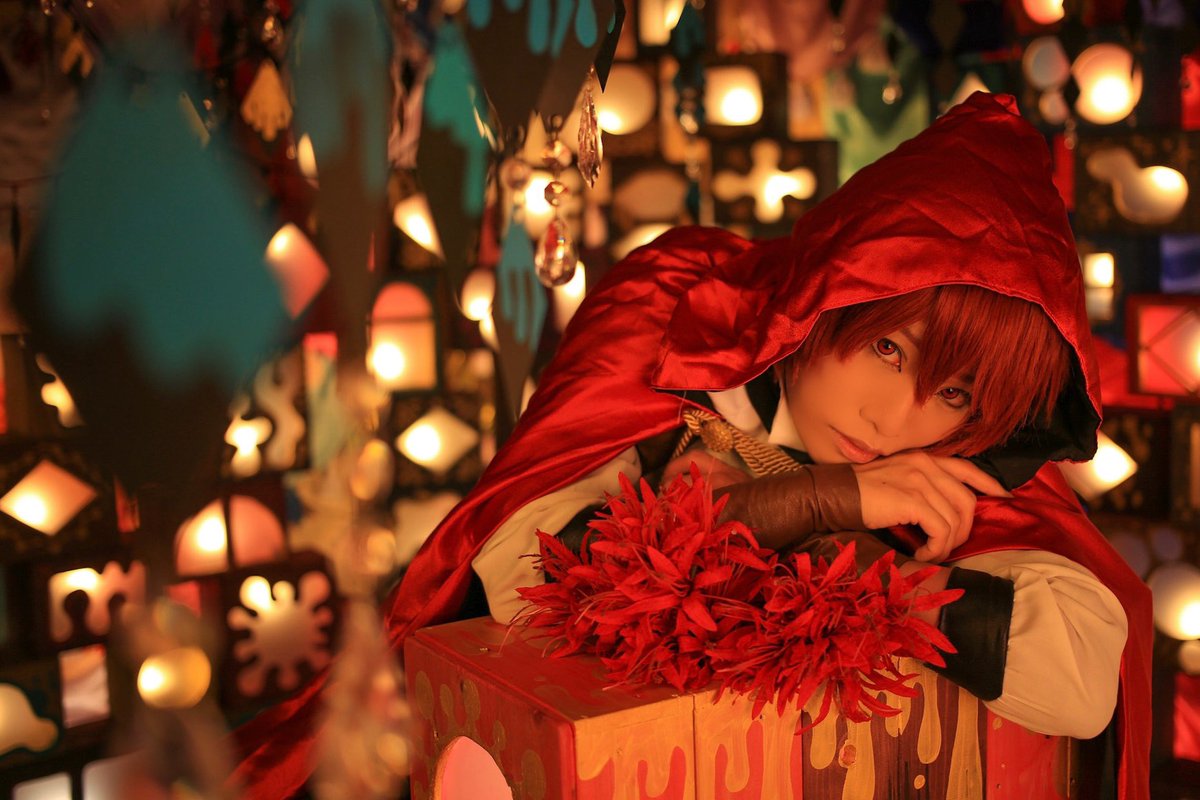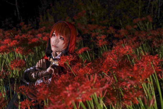 【コスプレ】 ⚠️捏造衣装注意 うたの⭐︎プリンスさまっ♪ リコリスの森 グレアム(嶺二)&ブラッド(音也) model:ぱぴこ&かいと 1枚目、ストロボに赤いカラーフィルター付けたら燃えましたw #カメラ好きな人と繋がりたい #ファインダー越しの私の世界ᅠ #ポートレート (?) #コスプレ (撮る人)