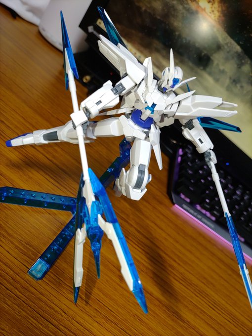 ✨HG ガンダムサバーニャ(最終決戦仕様)✨ 完成したー!やったー!ってライフル持たせるとき手の甲がどこかへ飛んでいって行方不明になったwみつかるまで放置w #ガンプラはどんな自由な発想で作ってもいいんだ #ガンプラの画像を貼るとRTされると聞いて #ガンプラ好きと繋がりたい #ガンプラ