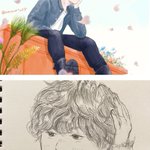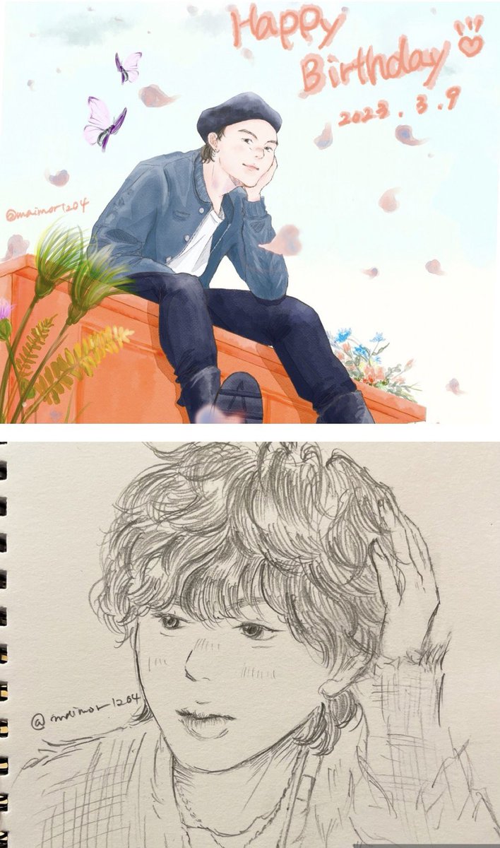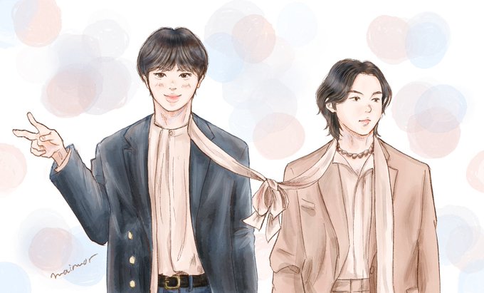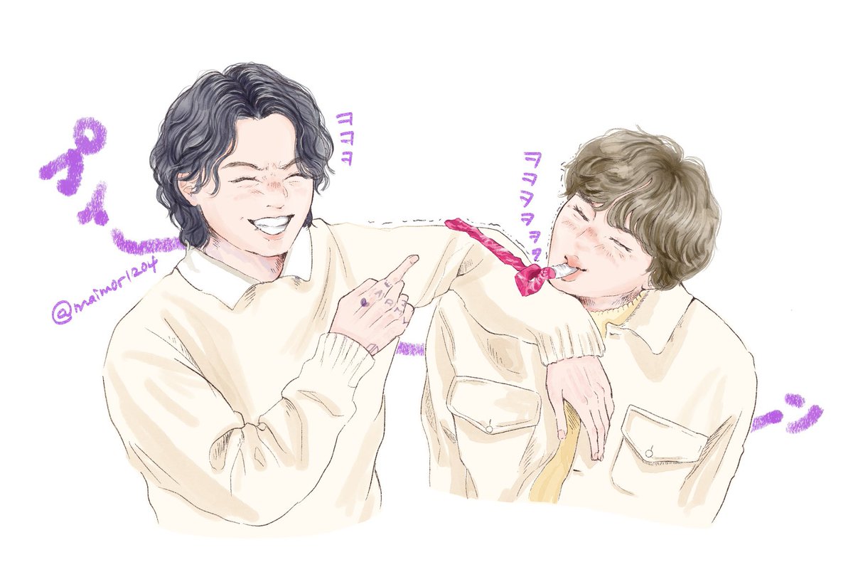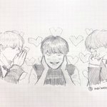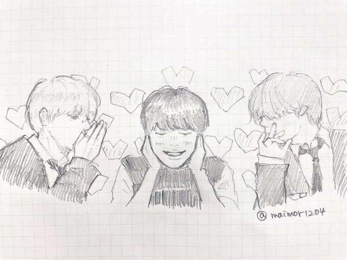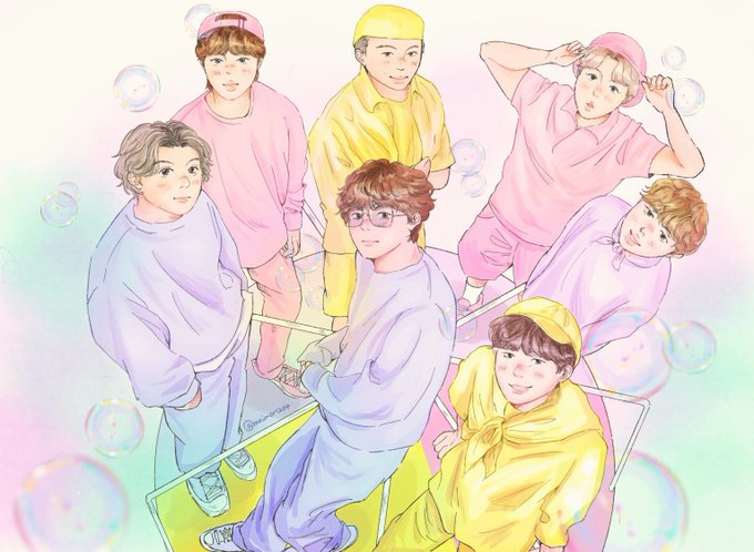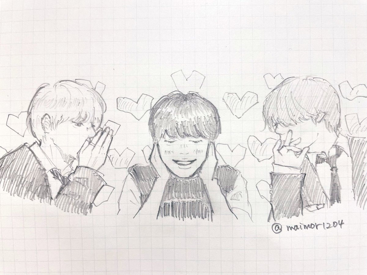 先日、パンダちゃん、かなびちゃん、すーちゃんとアナログ会をしました✨初めてで緊張したけどすごく楽しく描けたし、みんなのイラスト出来上がる過程見るのすごく感動したよ😭 清書と色塗りはデジタルです🥺 #btsfanart