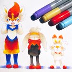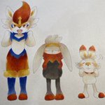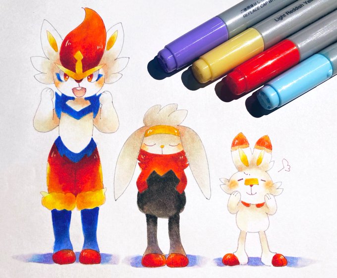 数ヶ月前に載せてるつもりでいたヒバニー一族 #ポケモン #コピック #エースバーン #ラビフット #ヒバニー