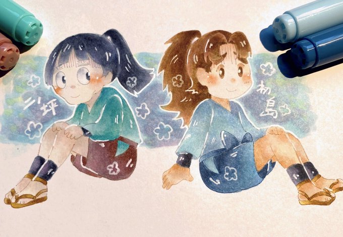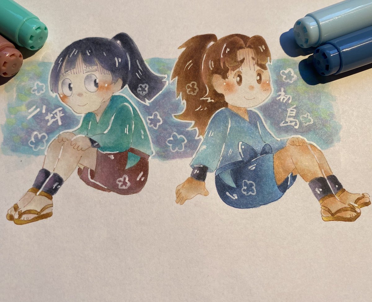 0 5 (怪士丸と孫次郎描いてたけどこれは白ペン描き込みすぎた感…) #忍たま #二ノ坪怪士丸 #初島孫次郎 #コピック 21/03/01 07:41