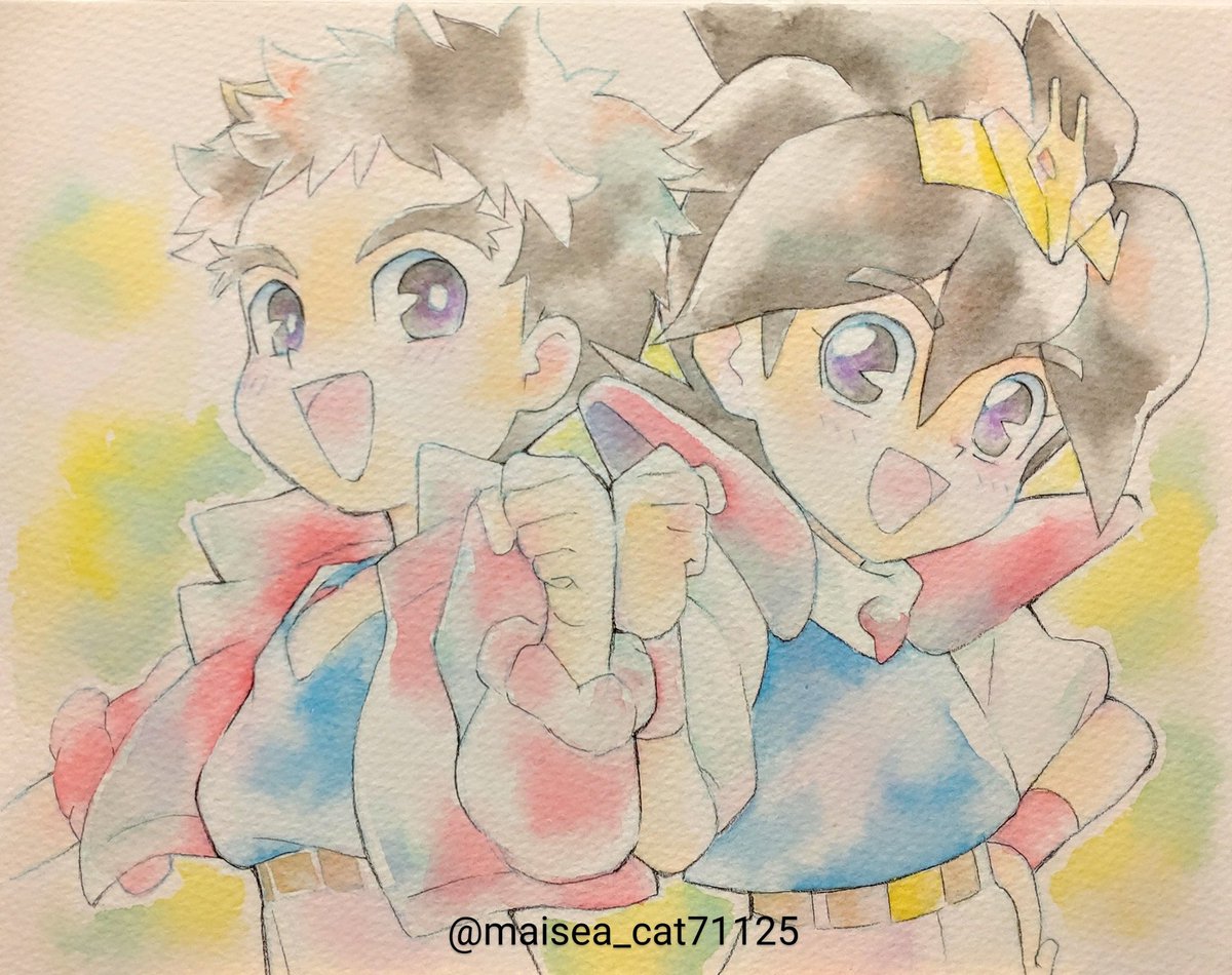 ワタグラプチオンリー開催おめでとうございます!すごく行きたかったですが今日は仕事をします…。参加してる皆さん、楽しんできてください🌸 お祝い絵を!と思ったのですが最近描いたワタルと大地の絵と似たような構図になってしまいましたレパートリー少な…ごめんなさい🤤