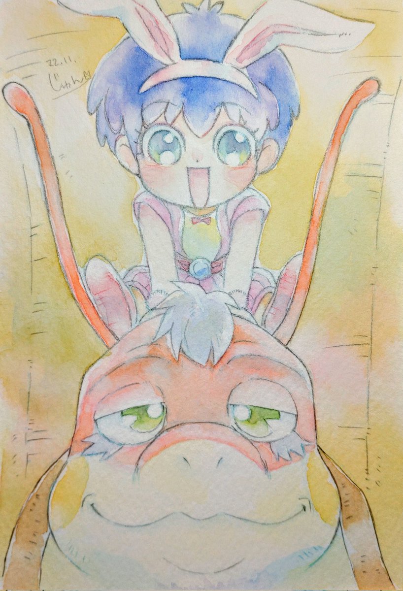 26 112 【水彩/落描き】 同じ作品内のキャラだったのでグリグリちゃんとマジカルゴ 一緒に描いてみました😊 @papiko_umikoさん、@S2cSbさん リクエストありがとうございました! 22/11/07 18:18