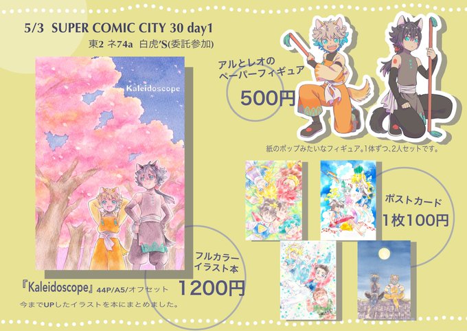 21 39 ①5月3日スパコミお品書きです。 数が読めず、ヒヨって少部数にしてしまったために本の単価が高くなってしまいました…、すみません🥹→②に続く 23/04/28 19:30