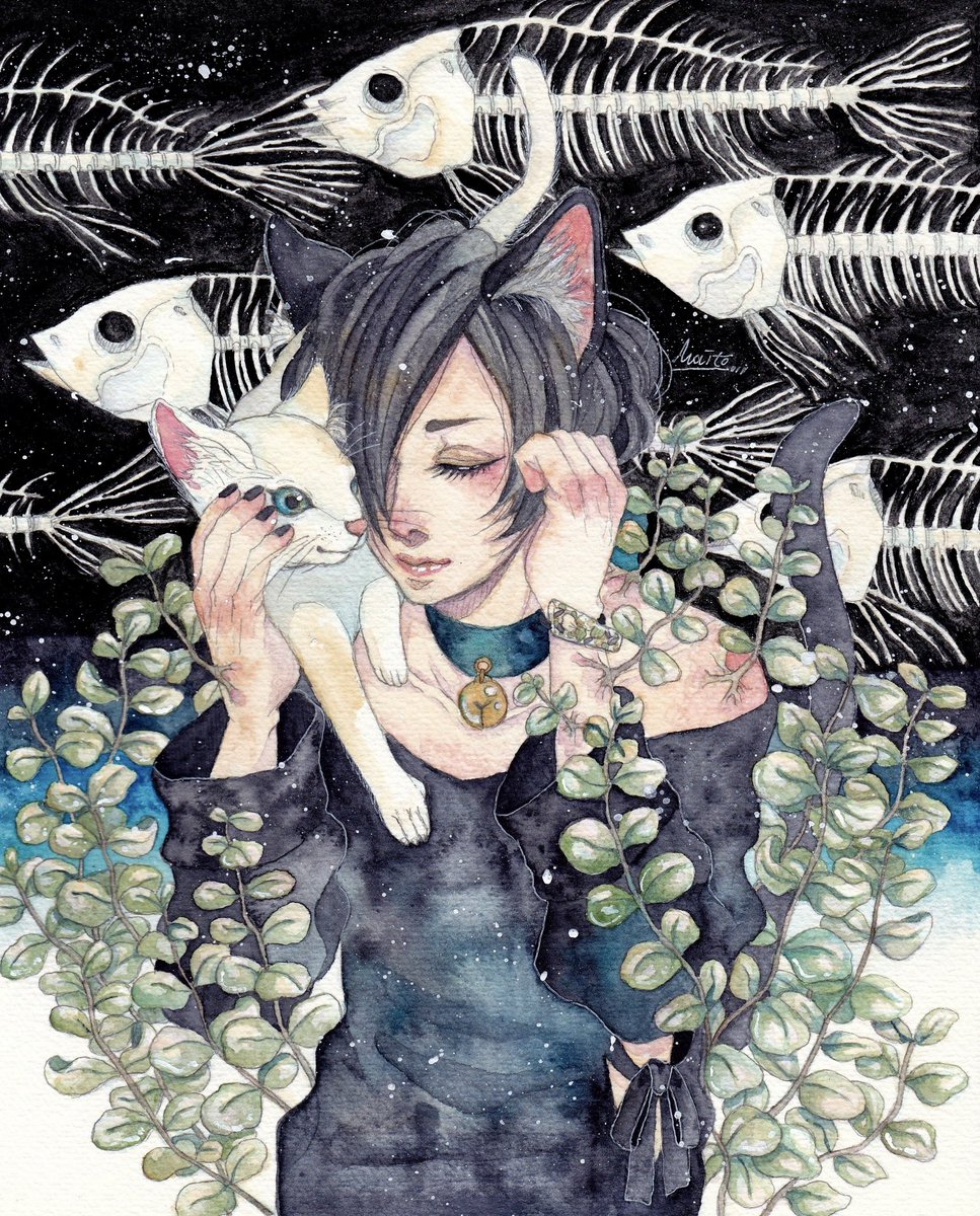 久しぶりに創作お絵描きしたい!と思ってうちの子たちを見返してたら、描いてからもう5年くらい経ってたらしい… #アナログ絵描き #透明水彩 #アナログイラスト