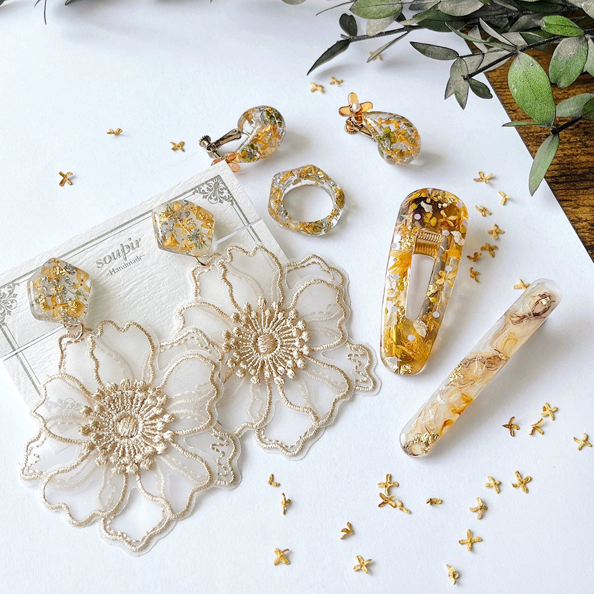 #2022年年末に今年まだ出会ってない作品に出会うタグ レジンとビーズやレースなど様々な素材を組み合わせてアクセサリーを作ってます☺️
