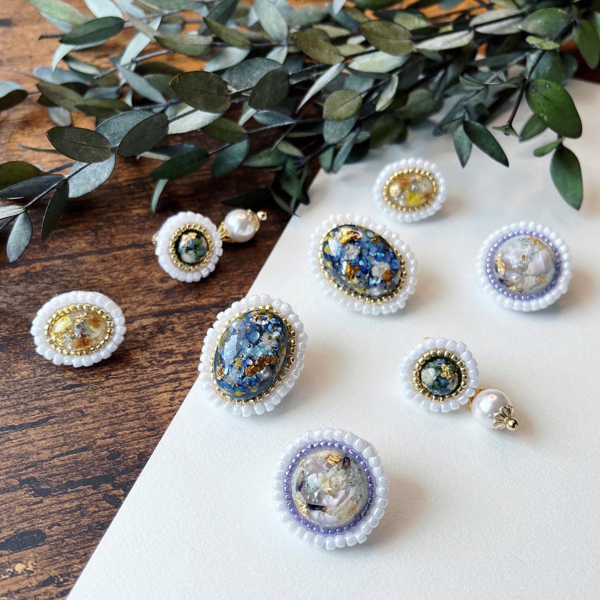 soupirのアートシリーズ! セットで使うとオシャレです☺️ @Creema_jp #ハンドメイド #透明水彩 #水彩アクセサリー ▽Creema creema.jp/creator/328499…