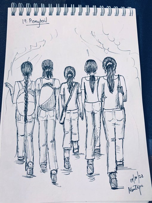 #inktober #inktober2022day19 Day 19: #ponytail Together, we could conquer the world! #collegestudents #collegefriends #Girlsquad