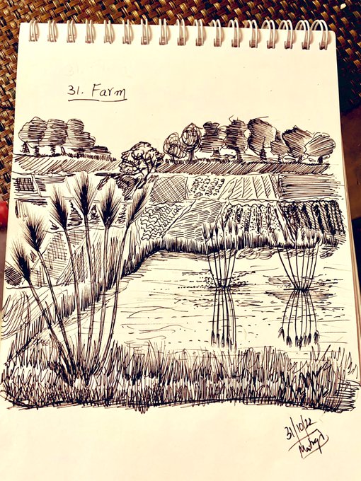 #inktober2022 Day 31: #farm the beautiful scenery you witness while travelling in train through farmlands #inktoberday31