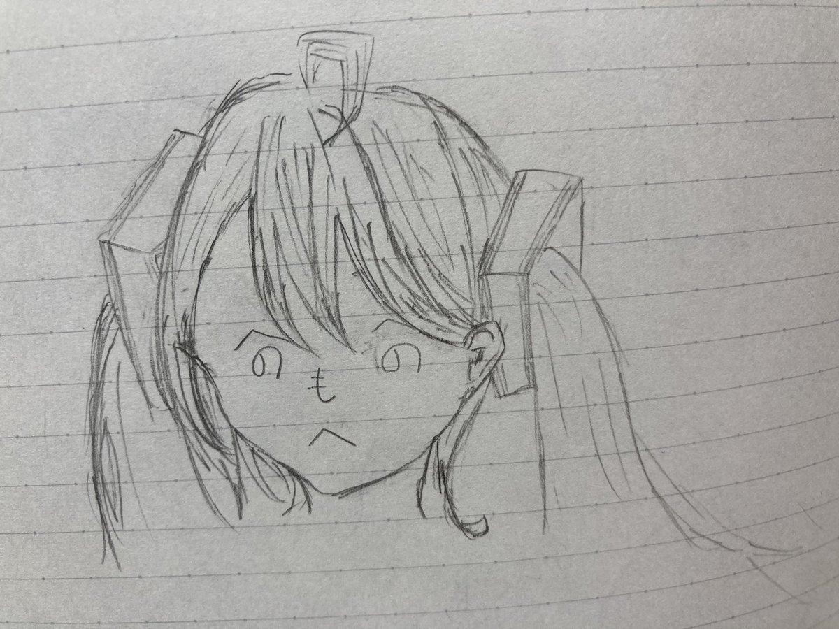 ミクちゃんの顔が書けなくなったから友達に「へのへのもへじで良くね?」って言われて書いたら意外といい感じ……?遅いけど昨日ミクの日…… #絵描きさんと繋がりたい #絵柄が好みって人にフォローされたい #上手くなりたい #イラスト #アナログ #初音ミク