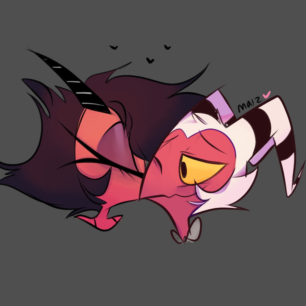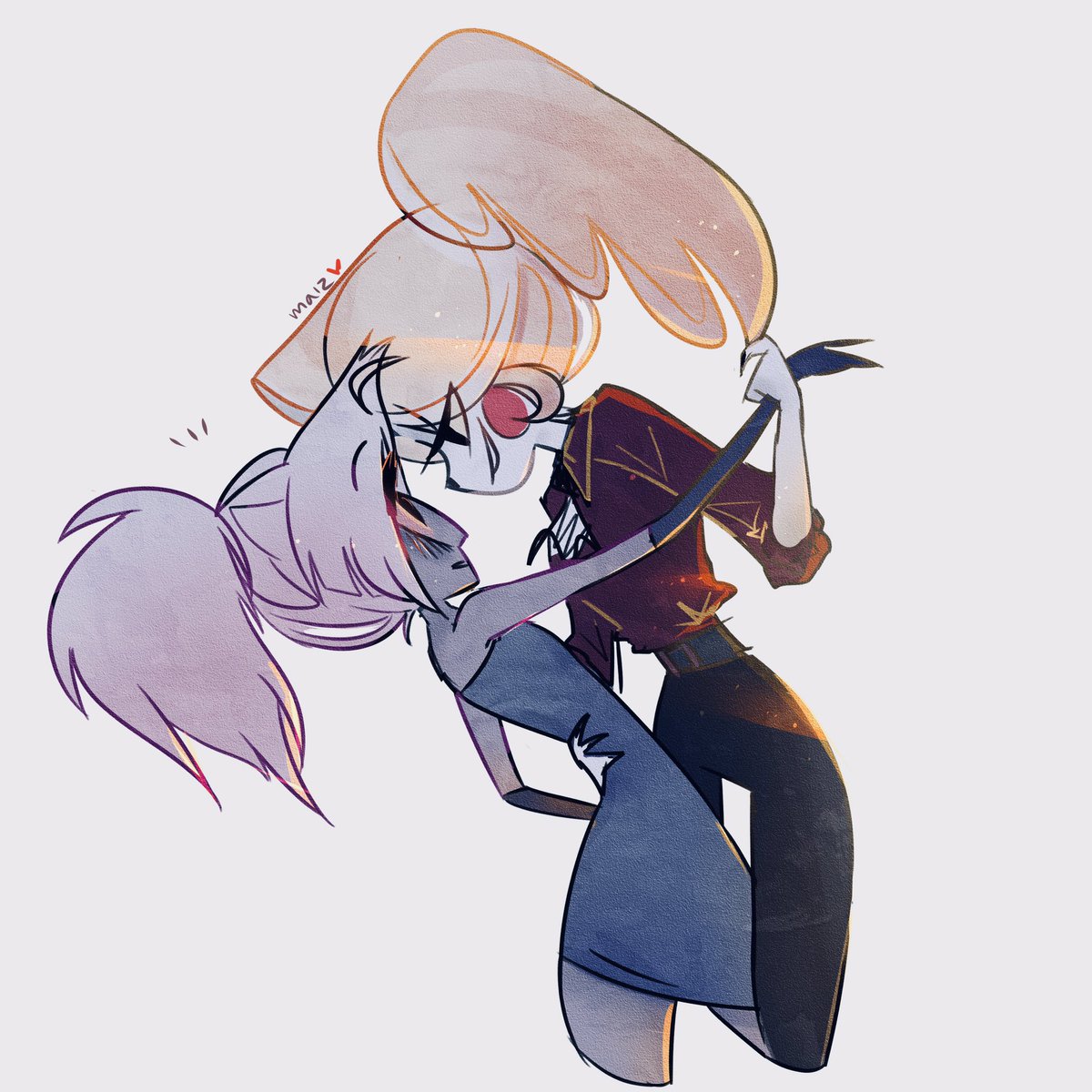 Charlie really likes it when vaggie laughs #HazbinHotelFanart #hazbinhotel #chaggie #rainbowmoth