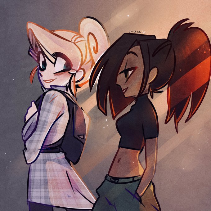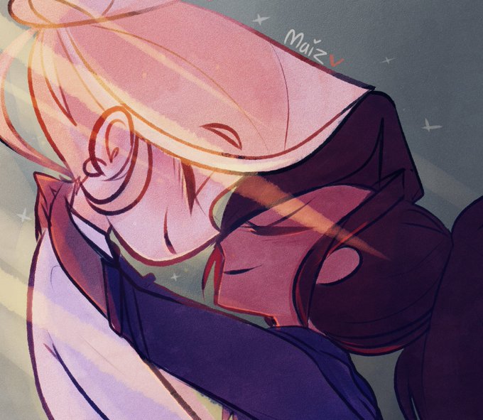 More of my chaggie human college au because I feel ✨romantic✨ #chaggie #rainbowmoth #HazbinHotelFanart #hazbinhotel