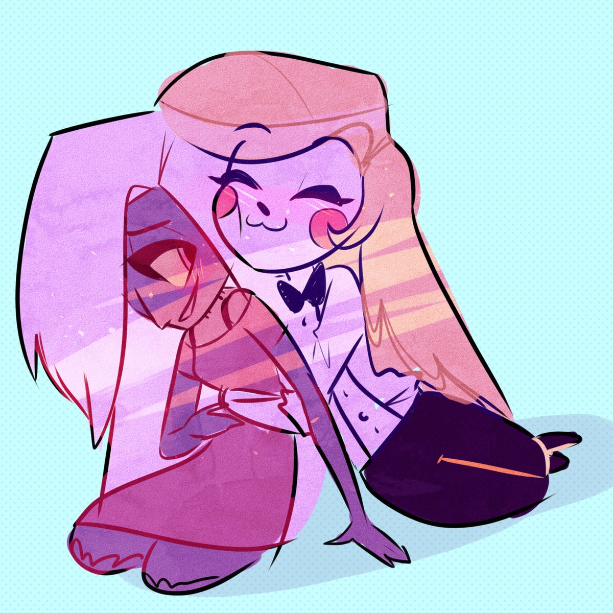 the girls are judging you in their 50s cosplay #chaggie #HazbinHotelFanart #hazbinhotel #rainbowmoth