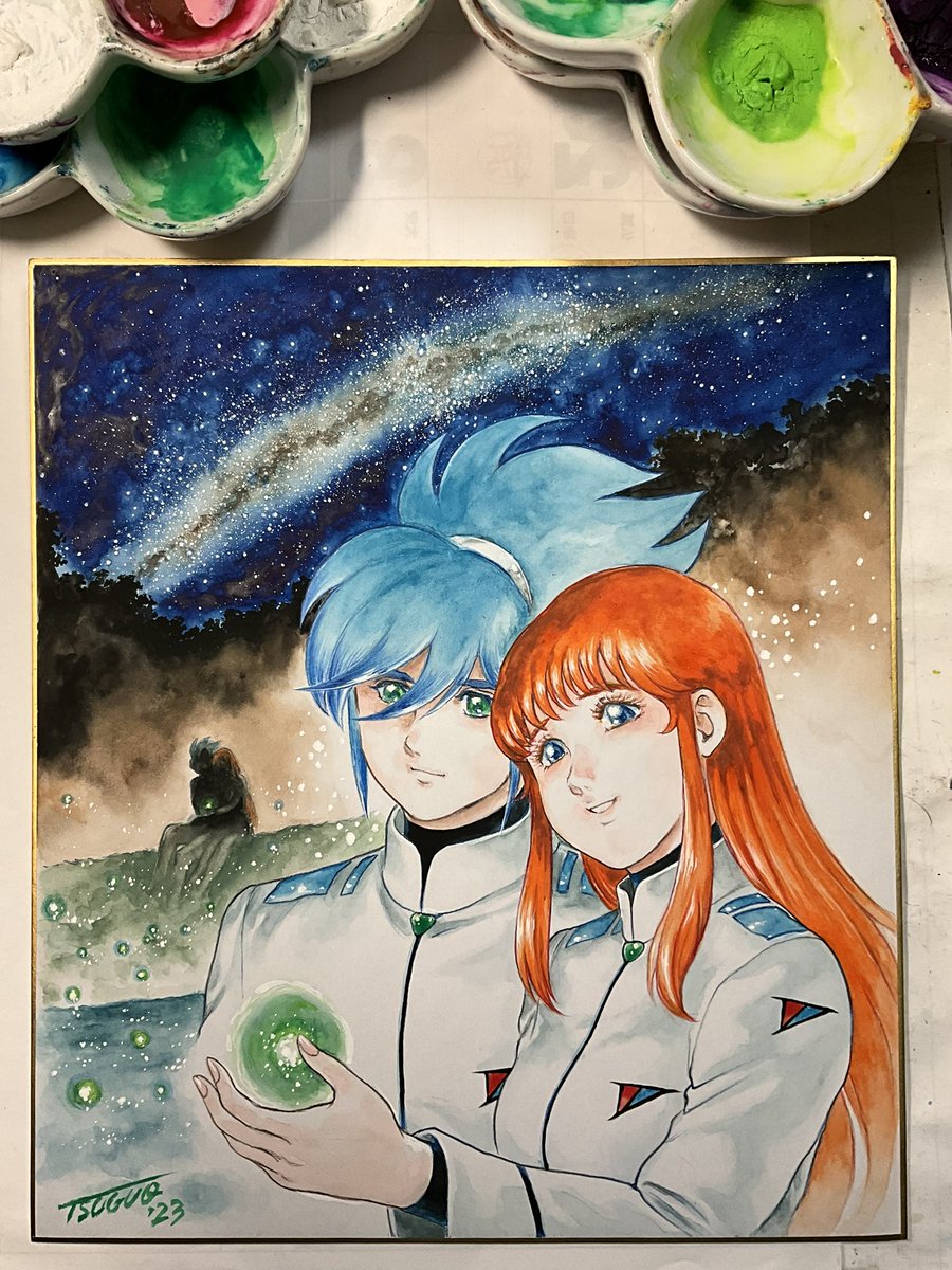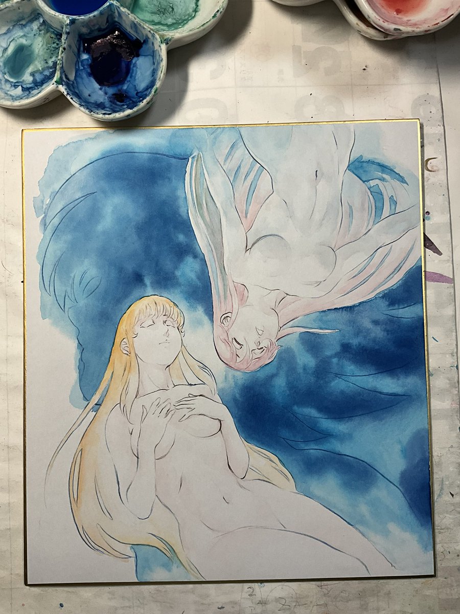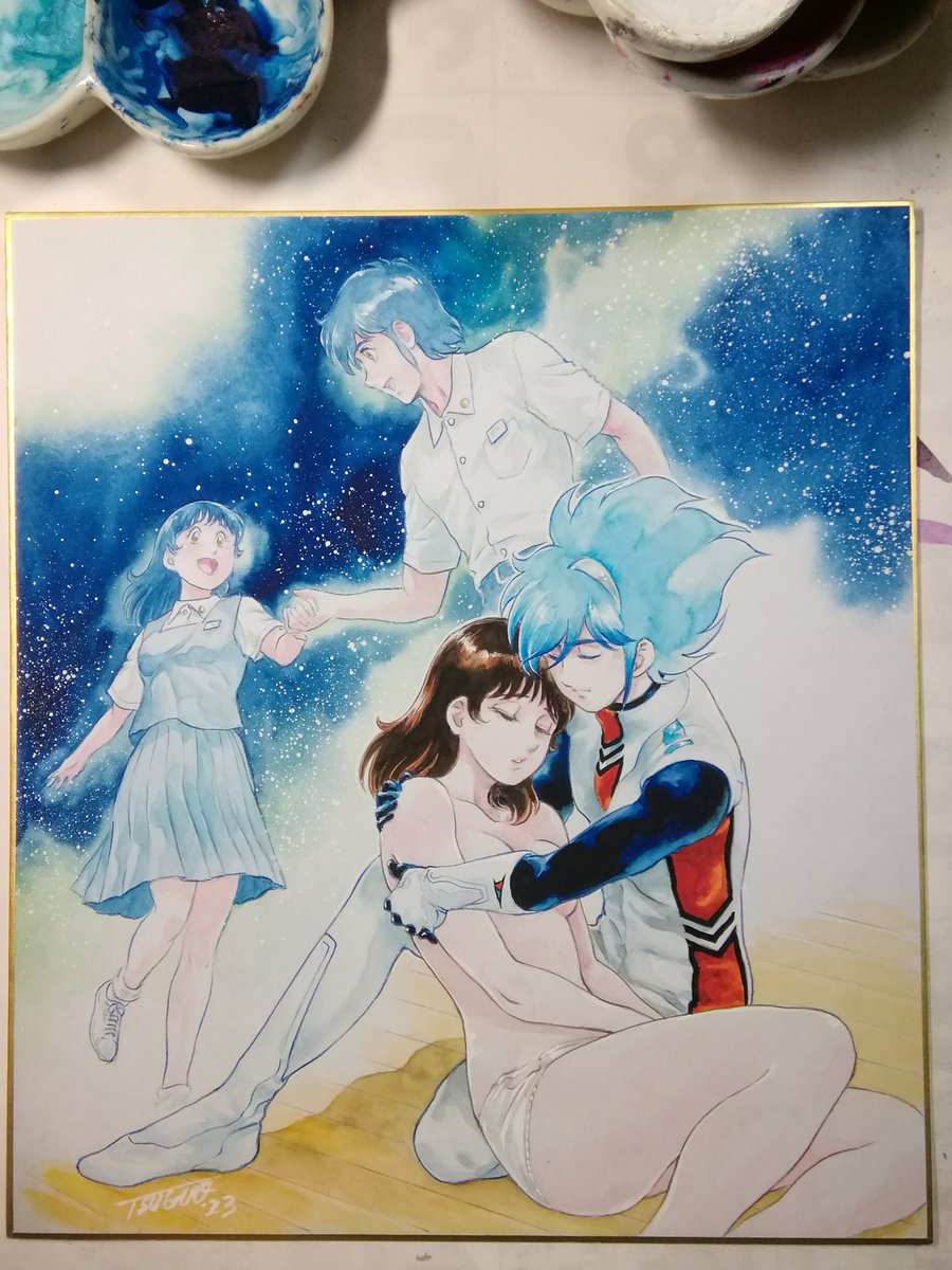 #岡崎つぐお彩色イラスト色紙 6月受注分最後の三枚の彩色完了しました。 週明けに発送手配する予定です。 ちなみに今月分からの受注は特に締切を設けませんので、ご希望の方はDMにてお声がけくださいませ。