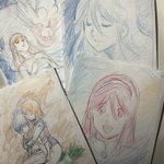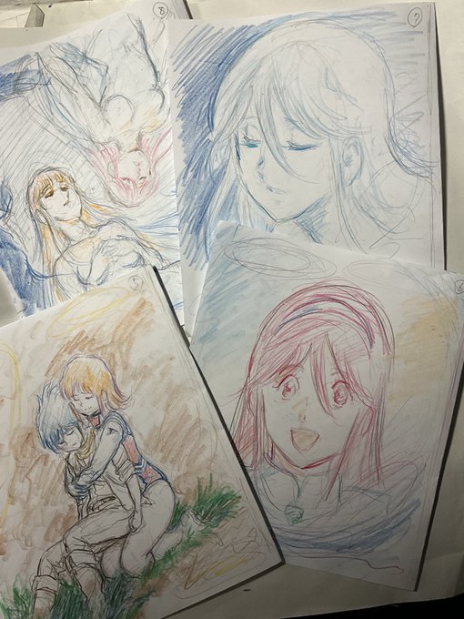 #岡崎つぐお彩色イラスト色紙 受注確定の三枚、ラフが出来ました。 明日は下絵から下塗りに入る予定です。 現在のところ今月受注確定分はこれだけですので、色紙製作には比較的余裕がございます。 拙作色紙をご希望の方がいらっしゃいましたらDMにてお声掛けくださいませ。
