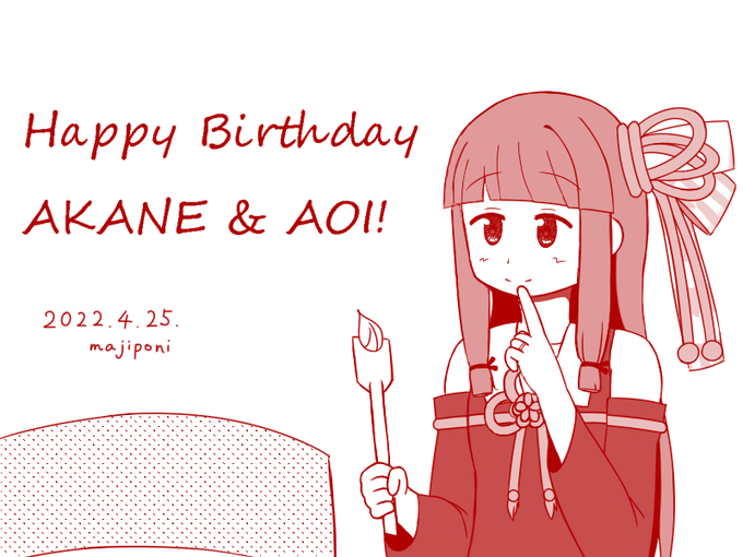13 42 すべてのウチらのファンに告ぐ、ウチらの誕生日はあと12時間もある、描け、撮れ、歌わせて祝うんや!どれもできない自分は、アカネチャンカワイイヤッターとか、アオイチャンチョコミントアイスとかつぶやけば、クリエイターの仲間入りや! #祝琴葉姉妹8周年 #琴葉姉妹誕生祭2022 22/04/25 12:31