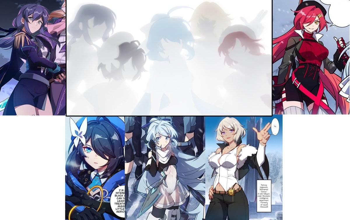 the suicide squad (Snowwolf Squad) from left: Lixue, Salome, Kira, Patricia, and Niggurath