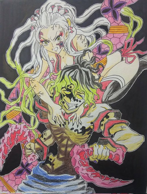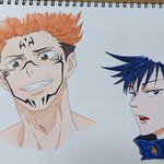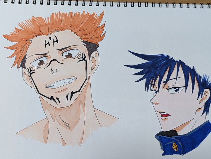 眼科で目薬処方して貰ったおかげで、随分目の痒みが改善されました(❁´ω`❁) ということで午後休もらって色塗り~ 久しぶりにマーカー(百均)で塗ったけど、ペンの感触好き♥ #呪術廻戦ファンアート #模写