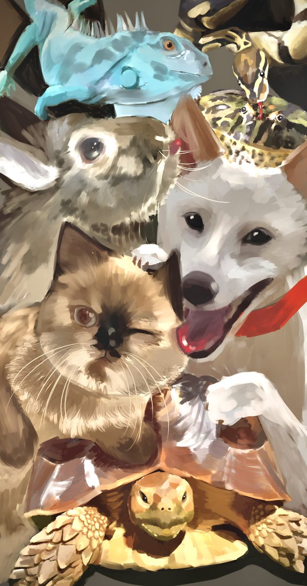 実は7匹の家族がいます🐸🐍🐰🐢🐱🐕🦎ホーム画にできるサイズでイラスト作成しましたみんなとっても可愛いです2枚目が実物です✨💕 #家族 #デジタルイラスト #爬虫類 #哺乳類