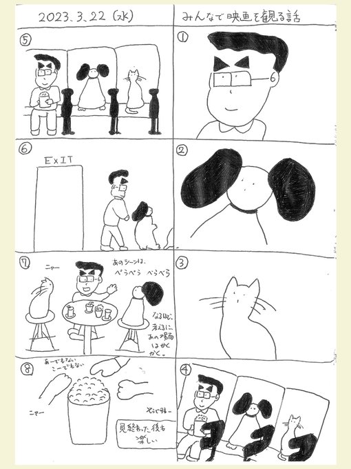 1 0 最近、描いたマンガ その144 みんなで映画を観る話 #漫画が読めるハッシュタグ #映画 23/03/23 21:00