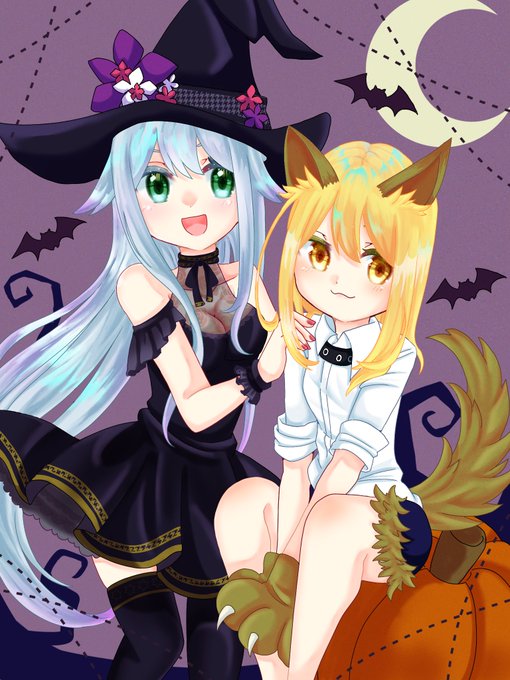 ハロウィンイラストではティアだけ魔女っ子だったが、うちの子ズは魔法使いなので、エマにも魔法使いの格好をさせてしまうのだ! #イラスト
