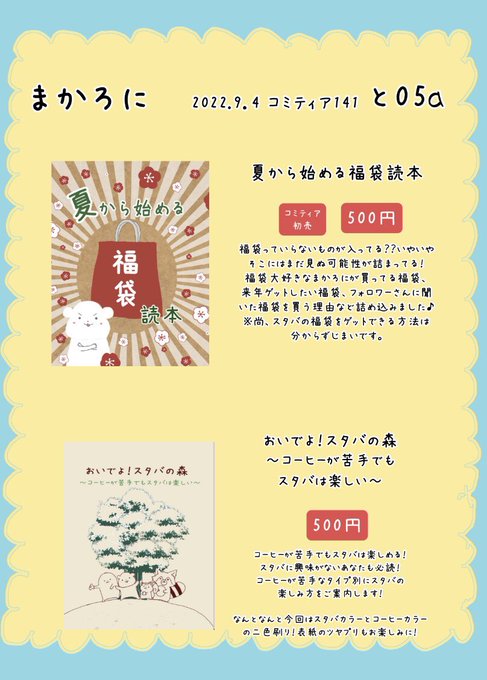 #C100 東マ 26a まかろに お品書き #おもしろ同人誌バザール in 大崎 新刊は年末に向けた福袋準備本!ご購入いただいた方には先着でノベルティがあります。既刊も持っていきますので、是非遊びに来てください😍