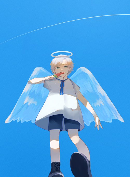 2 12 夏なので天使もスイカバー食べてる👼 #イラスト #オリジナル 22/06/28 18:35