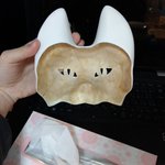 2019年最後の作品はオーダーの猫面! 全体は半艶、瞳は超艶の仕上げになってます 耳の袋造りも初挑戦ながらキレイにキマって良かった(写真は製作途中) アイシャドウのグラデとラメがコダワリ❤ #俺の描き込みを見てくれ