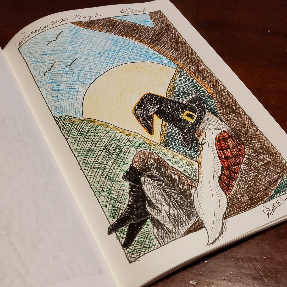 #inktober #day21 brings the prompt #sleep so I gave #colored #fineliners a try on this version of #Rip #VanWinkle #inktober2020 #inktober2020sleep #art #pen #ink #penandink #color