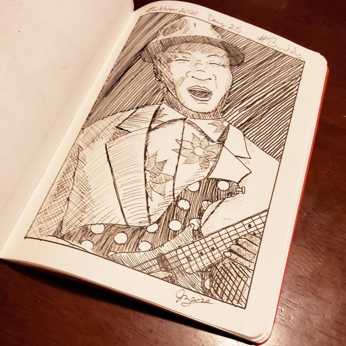 Its #inktober day 25 and the #prompt is #buddy so here's Buddy Guy and his iconic #polkadot #fender #stratocaster #inktober2020 #inktober2020buddy #art #pen #ink #penandink #buddyguy #blues #guitar